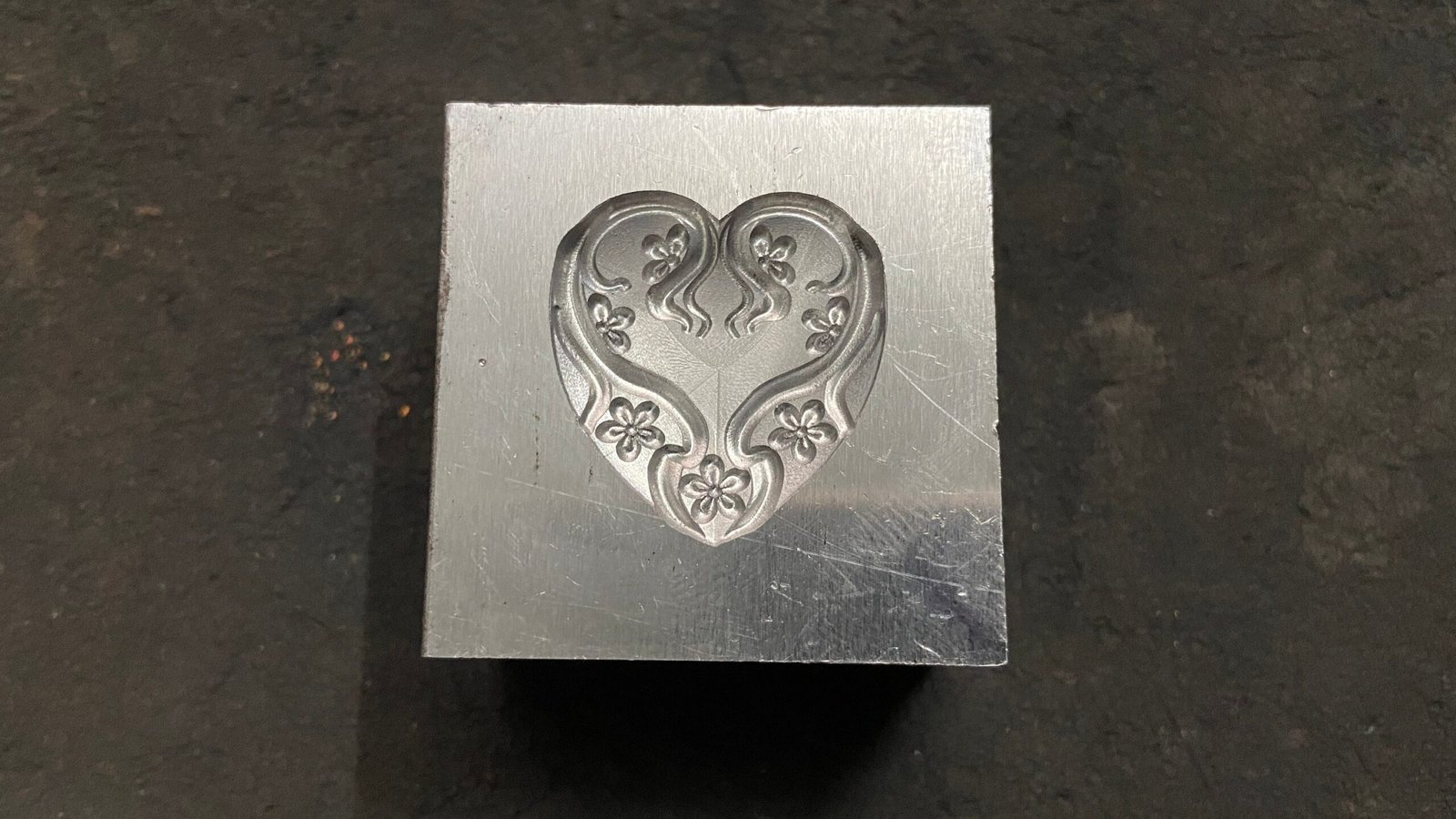 Floral Heart Impression Die: Steel Jewelry Making Tool (25mm)
