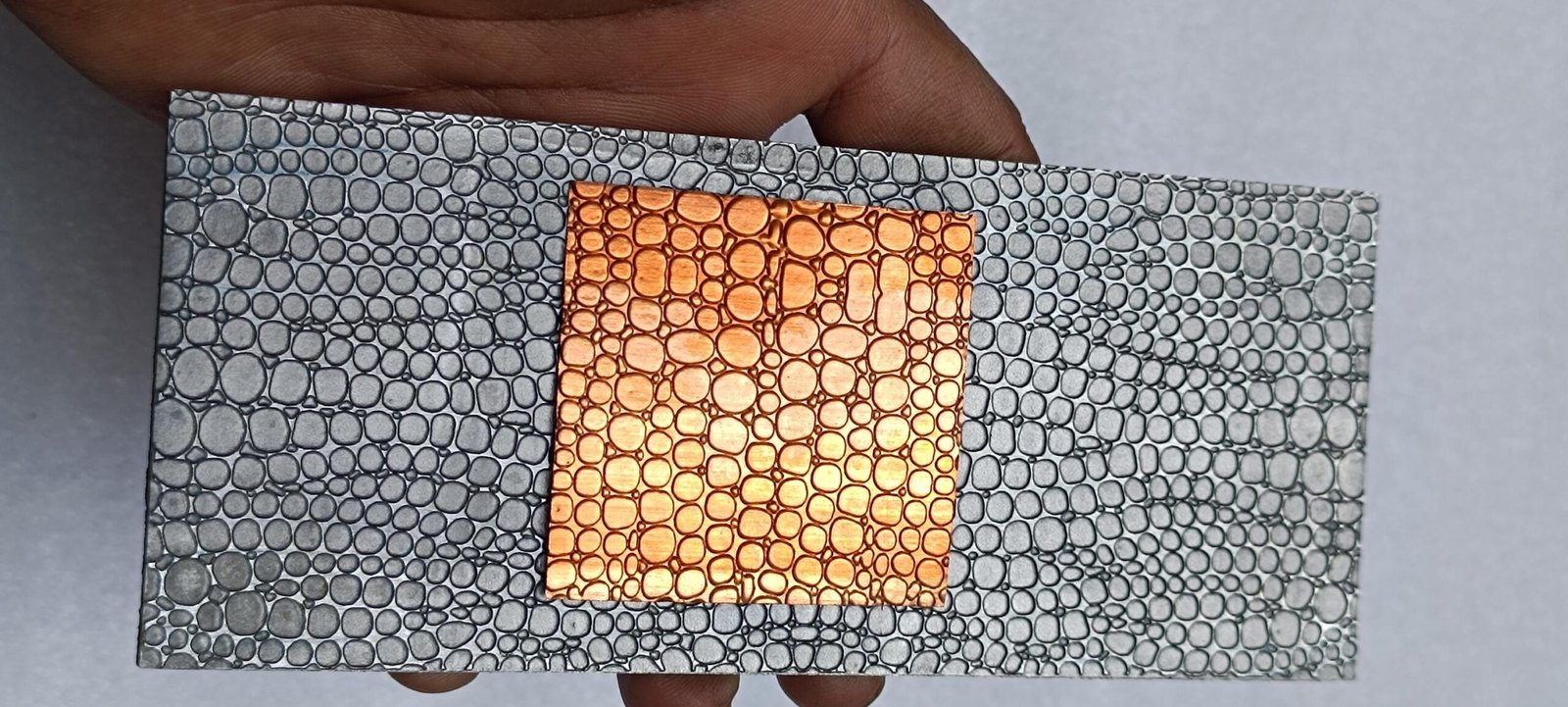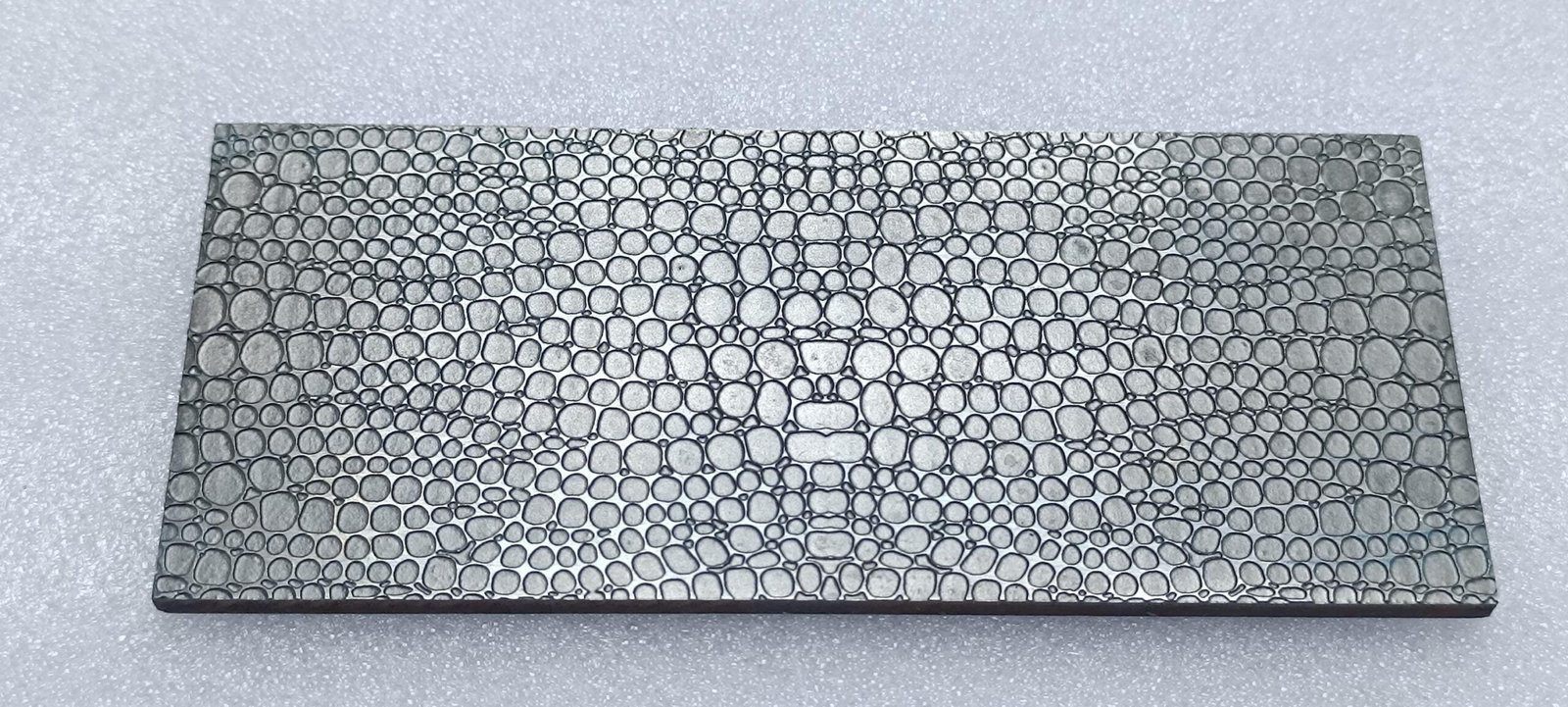 This steel texture plate is made from cold rolled mild steel and can be used with a hydraulic press, rolling mill or hammering by hand. Non-ferrous metals work best with the plate such as silver, copper and brass. This plate can be used multiple times.