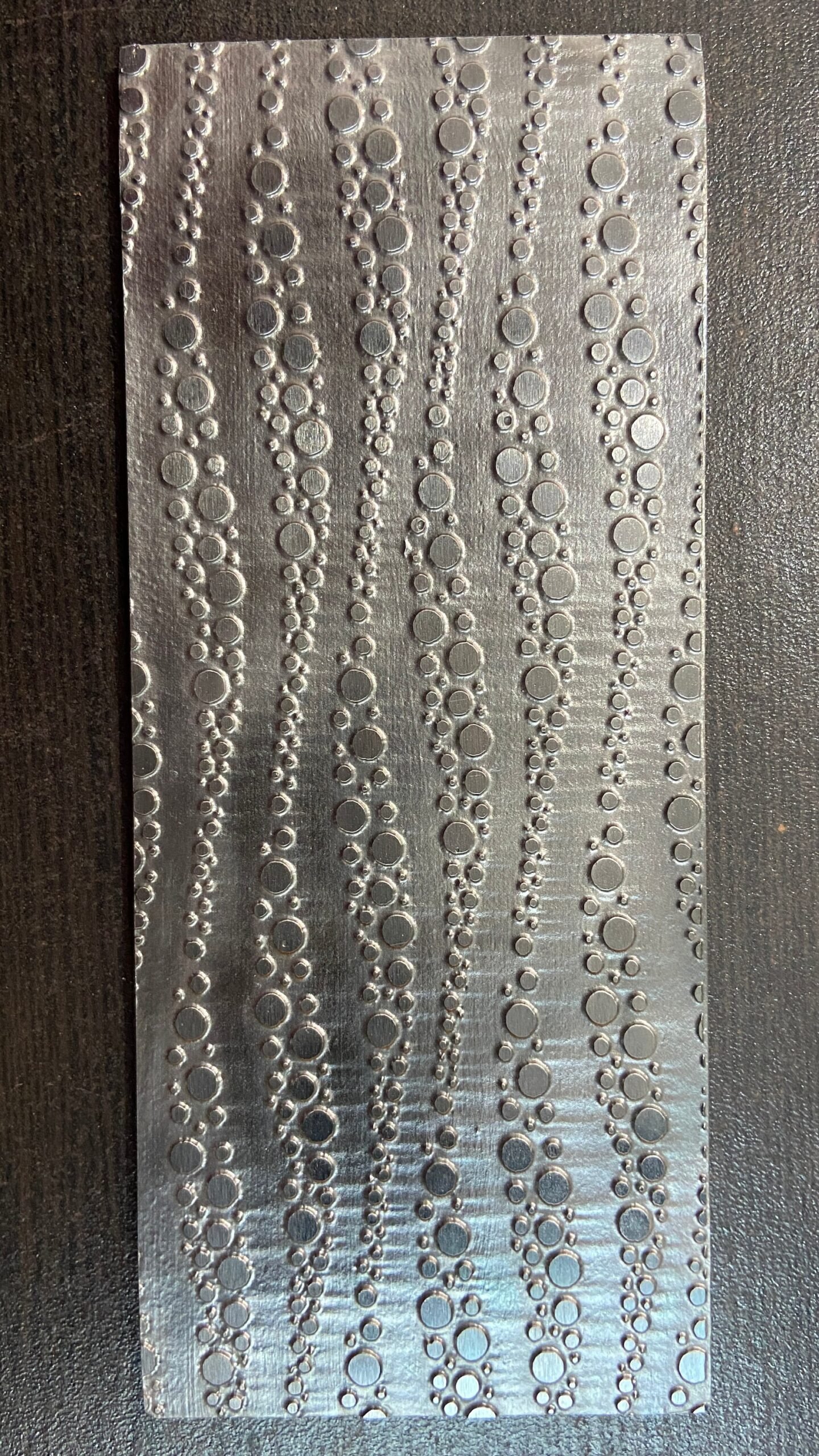 This steel texture plate is made from cold rolled mild steel and can be used with a hydraulic press, rolling mill or hammering by hand. Non-ferrous metals work best with the plate such as silver, copper and brass. This plate can be used multiple times.