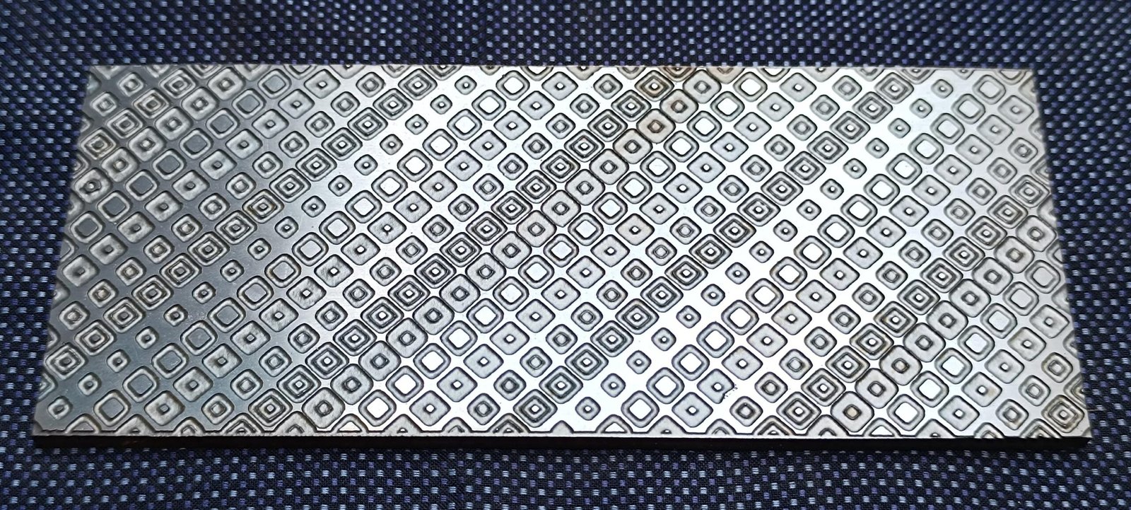 This steel texture plate is made from cold rolled mild steel and can be used with a hydraulic press, rolling mill or hammering by hand. Non-ferrous metals work best with the plate such as silver, copper and brass. This plate can be used multiple times.